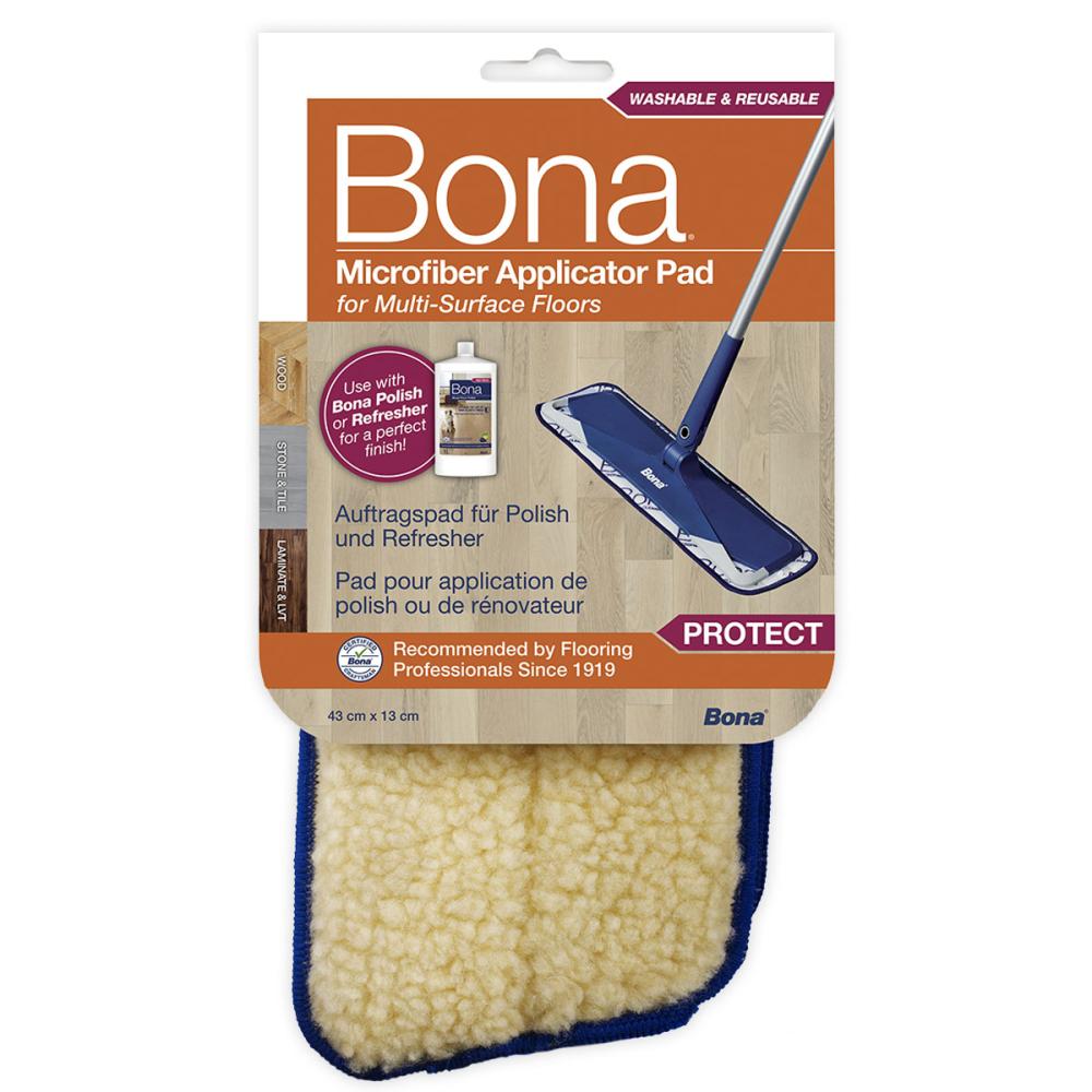 Utierka z mikrovlákna Bona Applicator Pad je jedinečne navrhnutá na hladké nanášanie leštiacich prostriedkov, ako sú napríklad Bona Parquet Polish a Bona Laminate and Tile Polish. Je opakovane použiteľná, možno ju prať v práčke, neobsahuje zmäkčovadlá a vydrží až 500 praní.