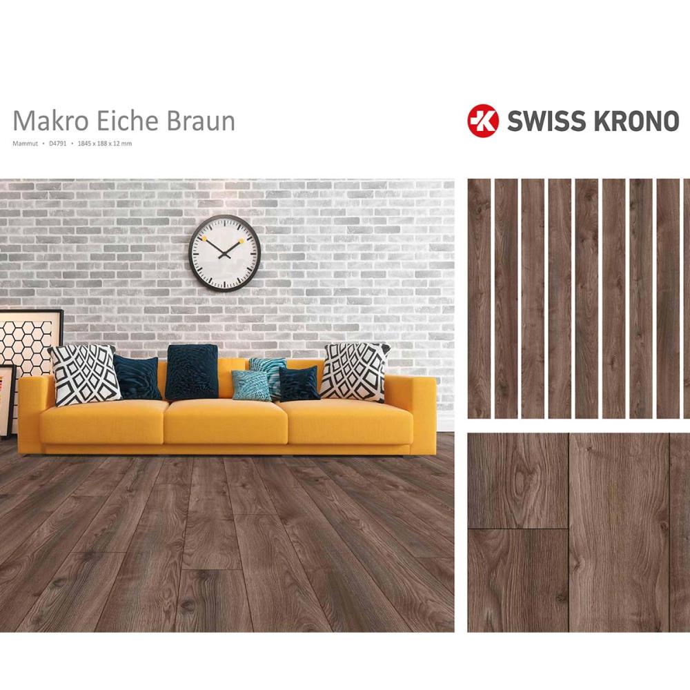Laminátová podlaha s hrúbkou 12mm , oderuvzdornej triedy AC5/33 s V drážkou po celom obvode lamely a systémom spoja click, čo umožňuje jednoduchú inštaláciu aj domácim kutilom. Laminatová podlaha vhodná do domácnosti a vzhľadom na vysokokvalitnú laminátovú podlahu, môže byť namontovaná hocikde. Laminátová podlaha sa často používa v komerčných priestoroch, v rátane hotelov, reštaurácii, kanceláriách a obchodoch. Tieto podlahy prirodzene znesú viac námahy ako tie na domáce využitie.