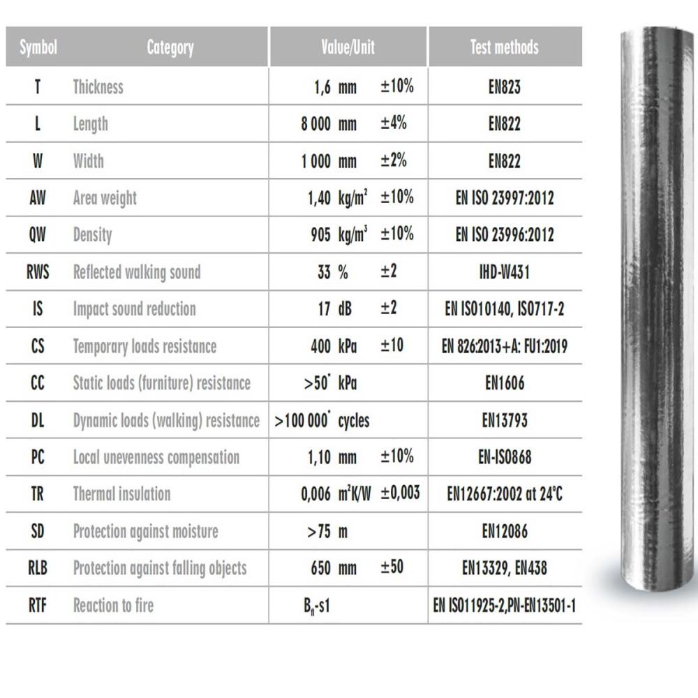 Stálo elastická, pevná podložka s patentovanou RWS vrstvou základného materiálu, špeciálne vyvinutá pre vinylové podlahy. RWS vrstva materiálu prestavuje nový štandard pre zníženie kročajovej hlučnosti. Podložka je vynikajúco kompatibilná s podlahovým vykurovaním.